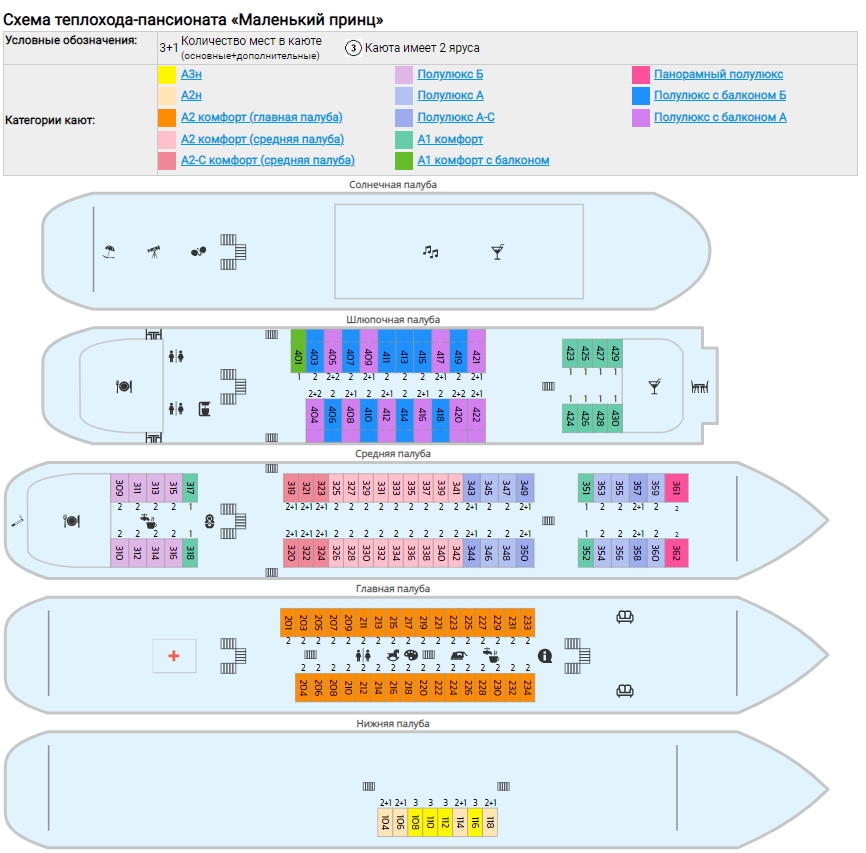 | 317: А1 комфорт, мест 1+0: Средняя палуба | |
