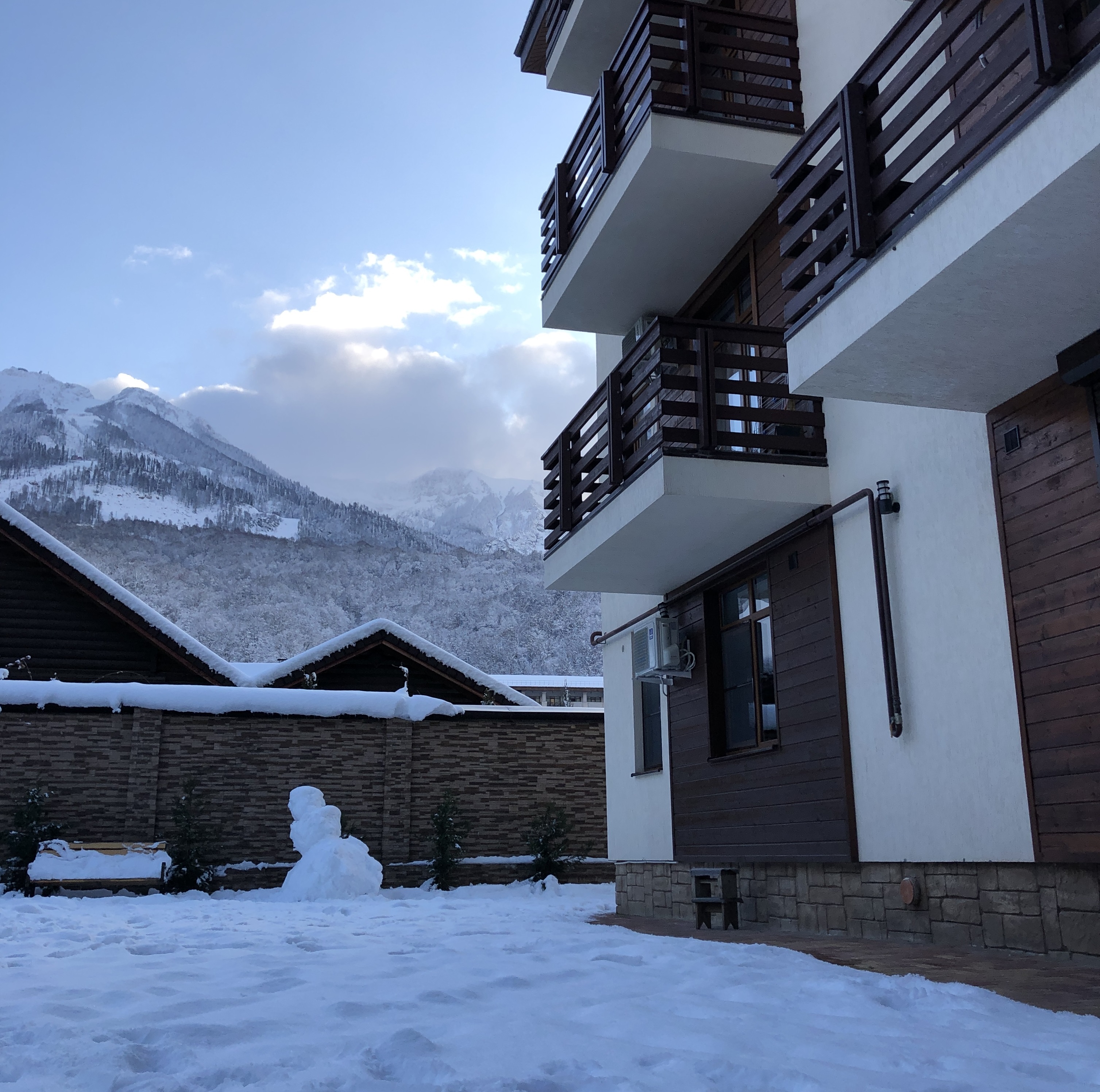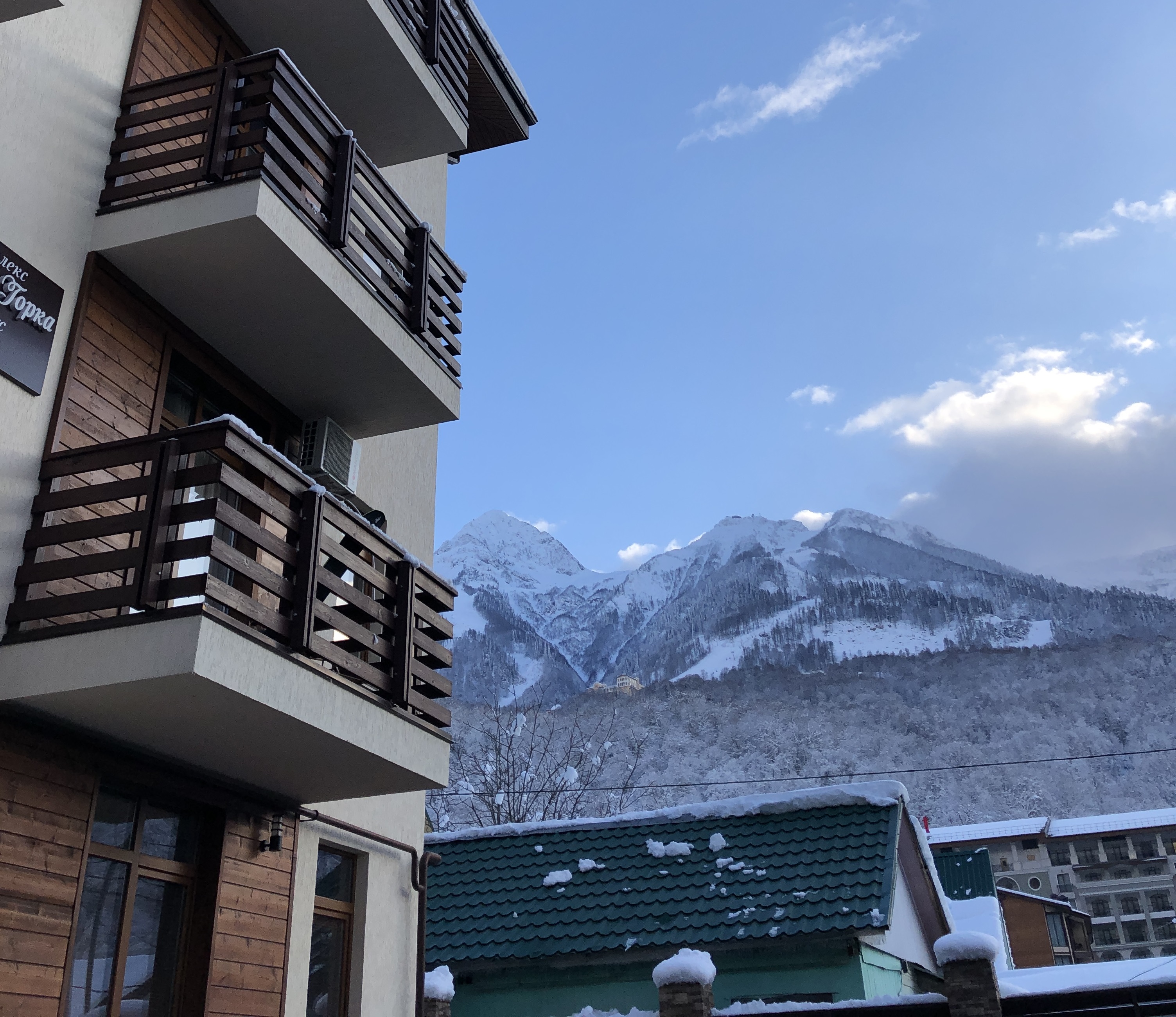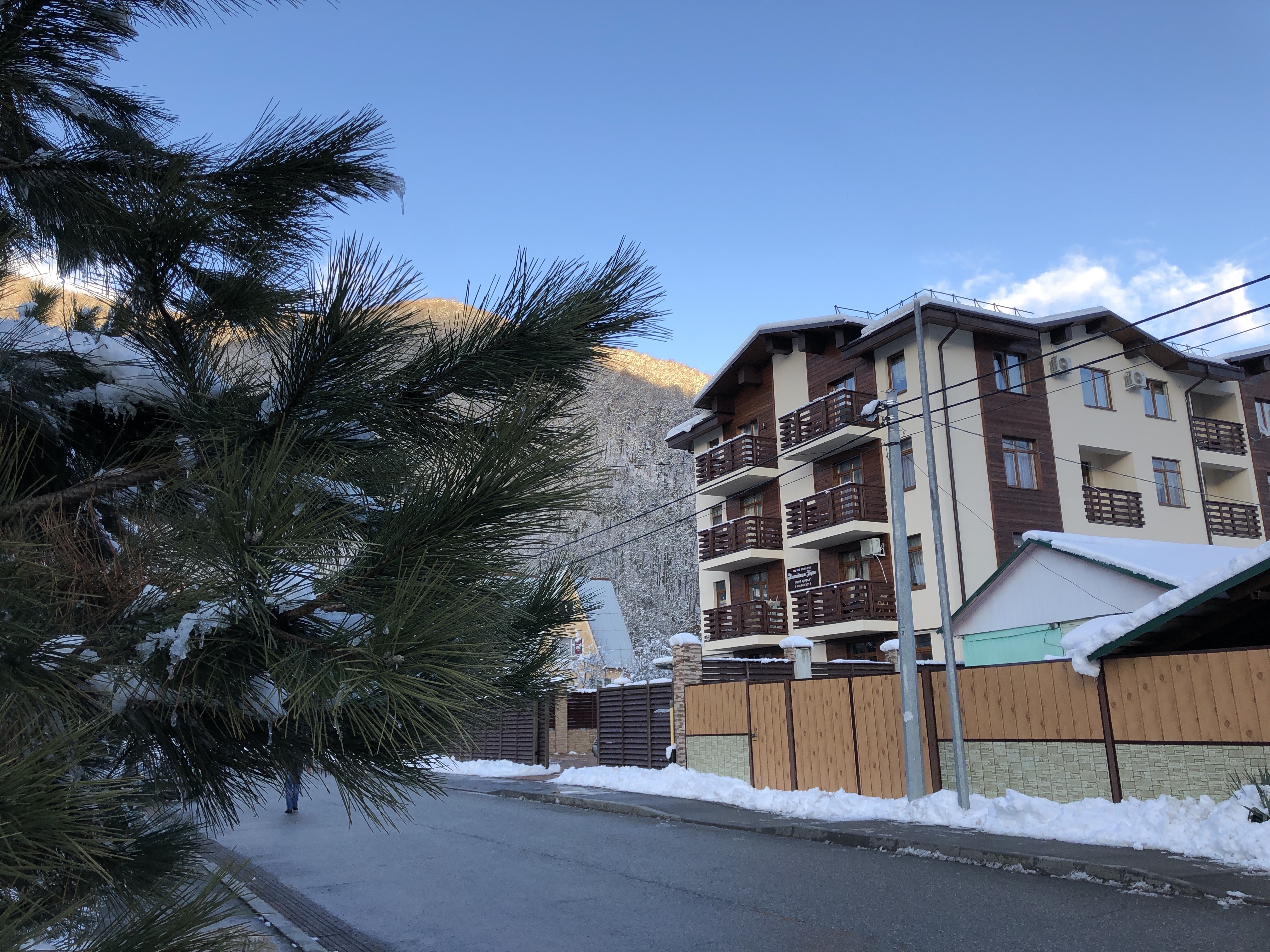 Апартаменты находятся в высокогорном поселке Эсто-Садок на курорте Красная Поляна. В шаговой доступности – зоны для прогулок: набережная реки Мзымта и парк «Времена года», торговый центр «Горки Молл» с аквапарком и кинотеатром, казино и горнолыжные подъемники. В 10 минутах езды знаменитая Роза Хутор и канатная дорога «Олимпия». Дорога вниз к побережью и до международного аэропорта займет чуть больше получаса.