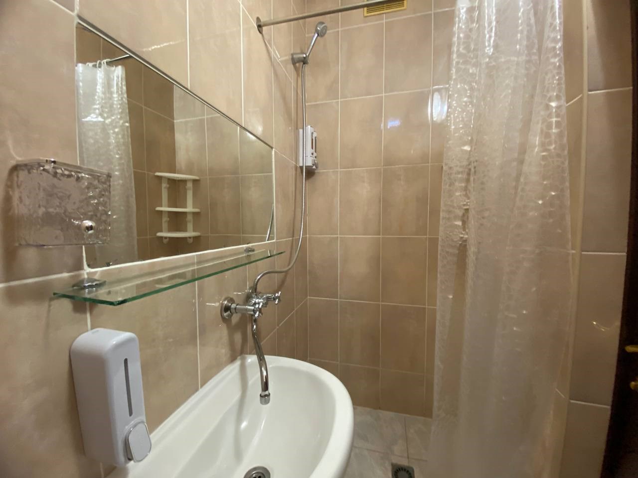 с душевой кабиной: ; теплый пол: ; туалетные принадлежности: ; фен: ;