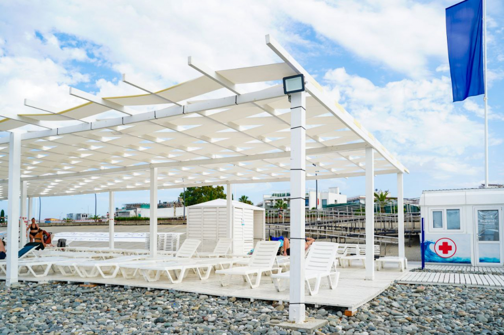 Пляж города-отеля «Бархатные сезоны», прошел систему эко-сертификации пляжных территорий, разработанную Федеральным агентством по туризму, и был удостоен высшей награды I категории «Синий флаг». Основные критерии - чистота и безопасность. Особое внимание уделяют качеству морской воды и берега, доступность пляжа для разных категорий граждан. Дополнительно для гостей предоставляется пляжное оборудование: бунгало, пляжные диваны.