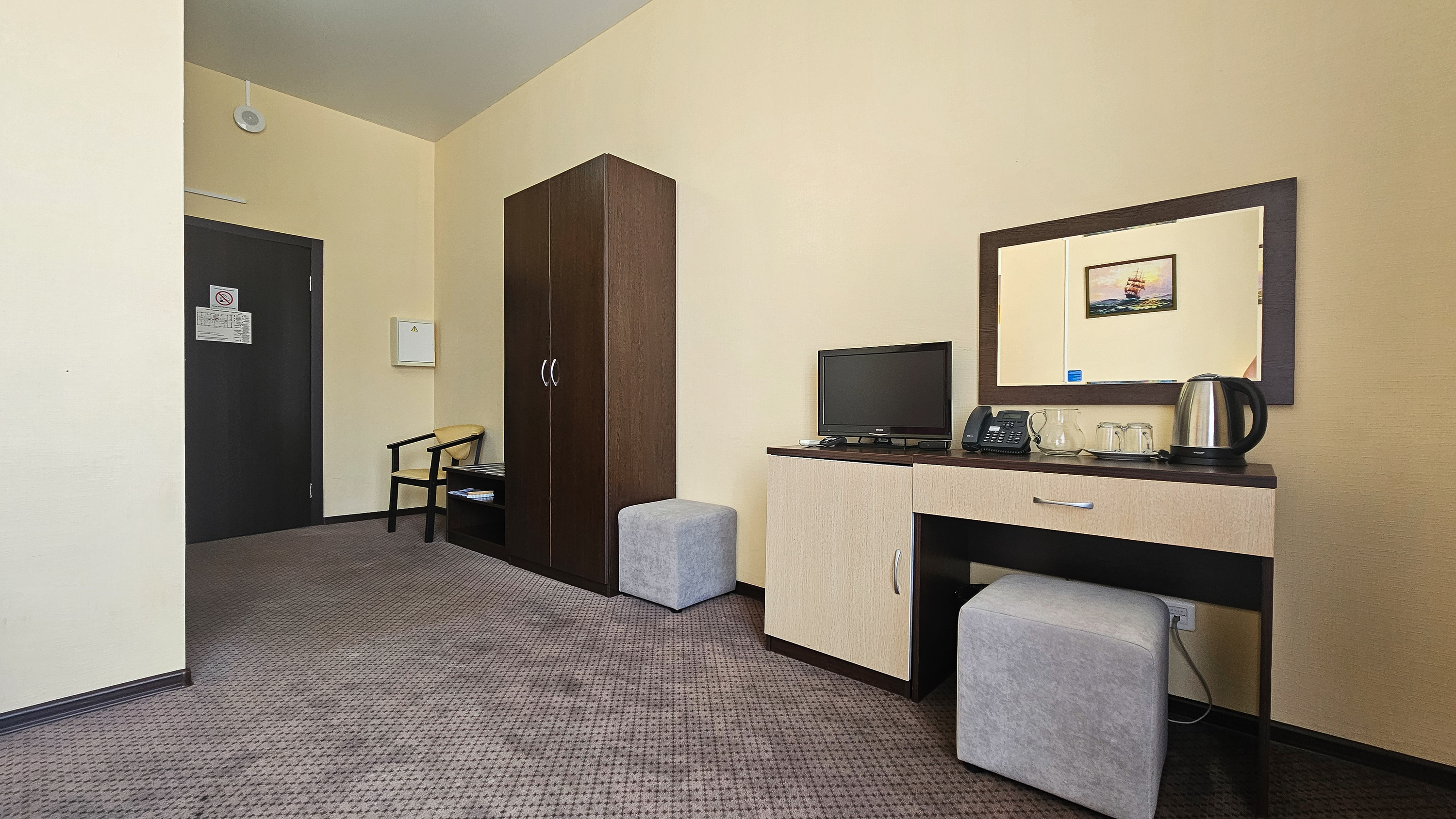 - Стандарт. Стандарт Комфорт 2-местный для маломобильных гостей. Осн. мест: 2. Доп. мест: 1.