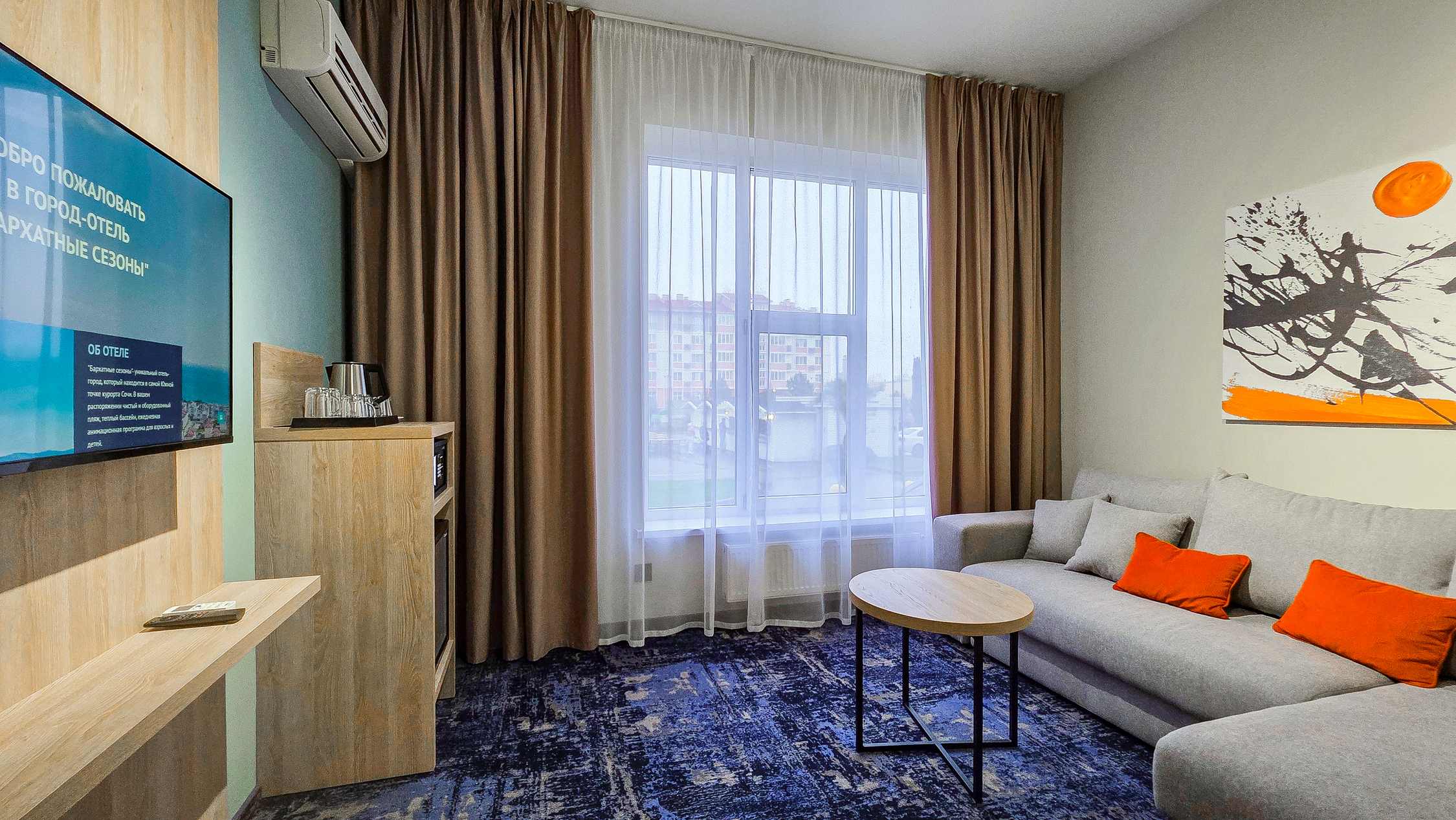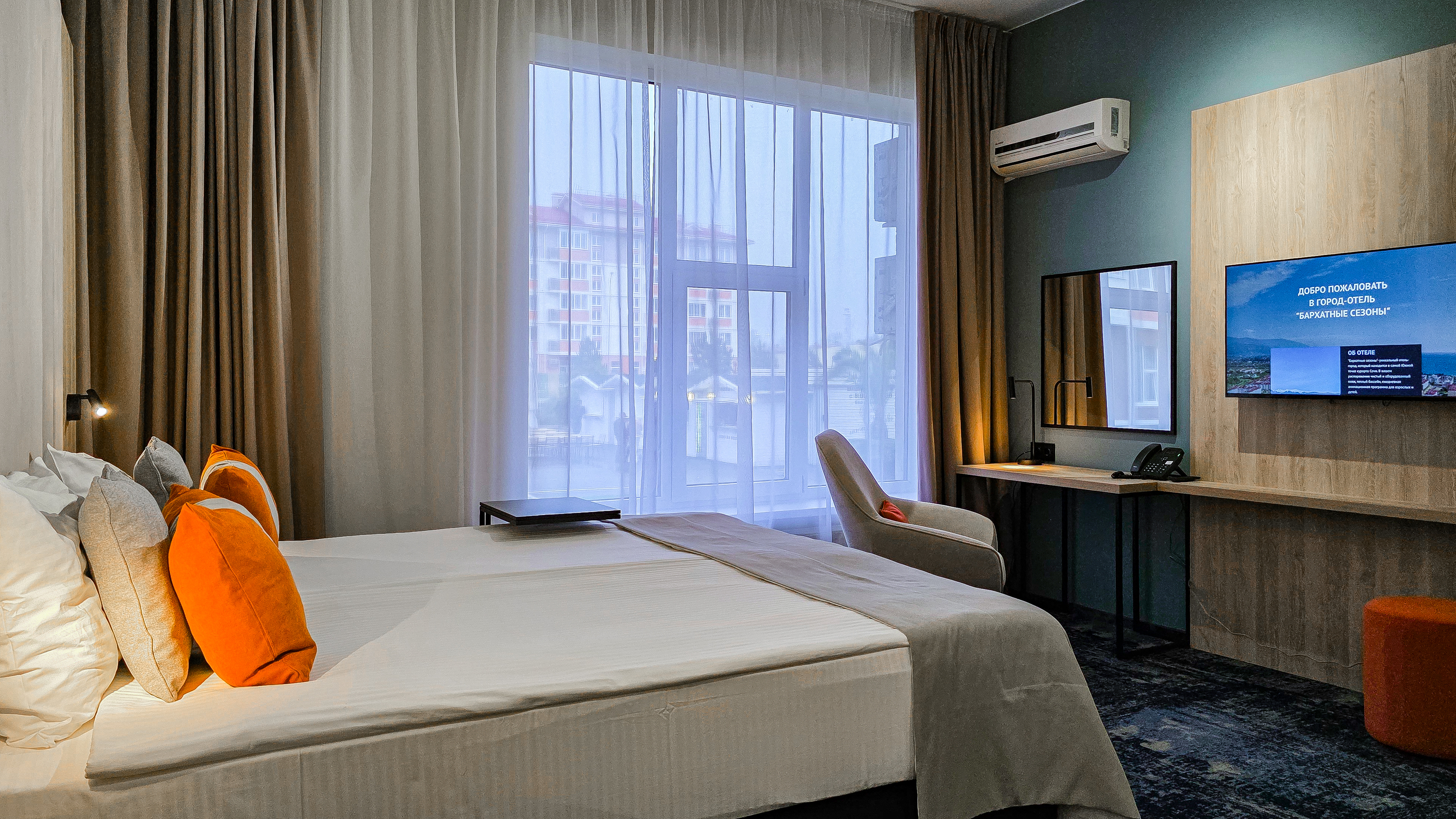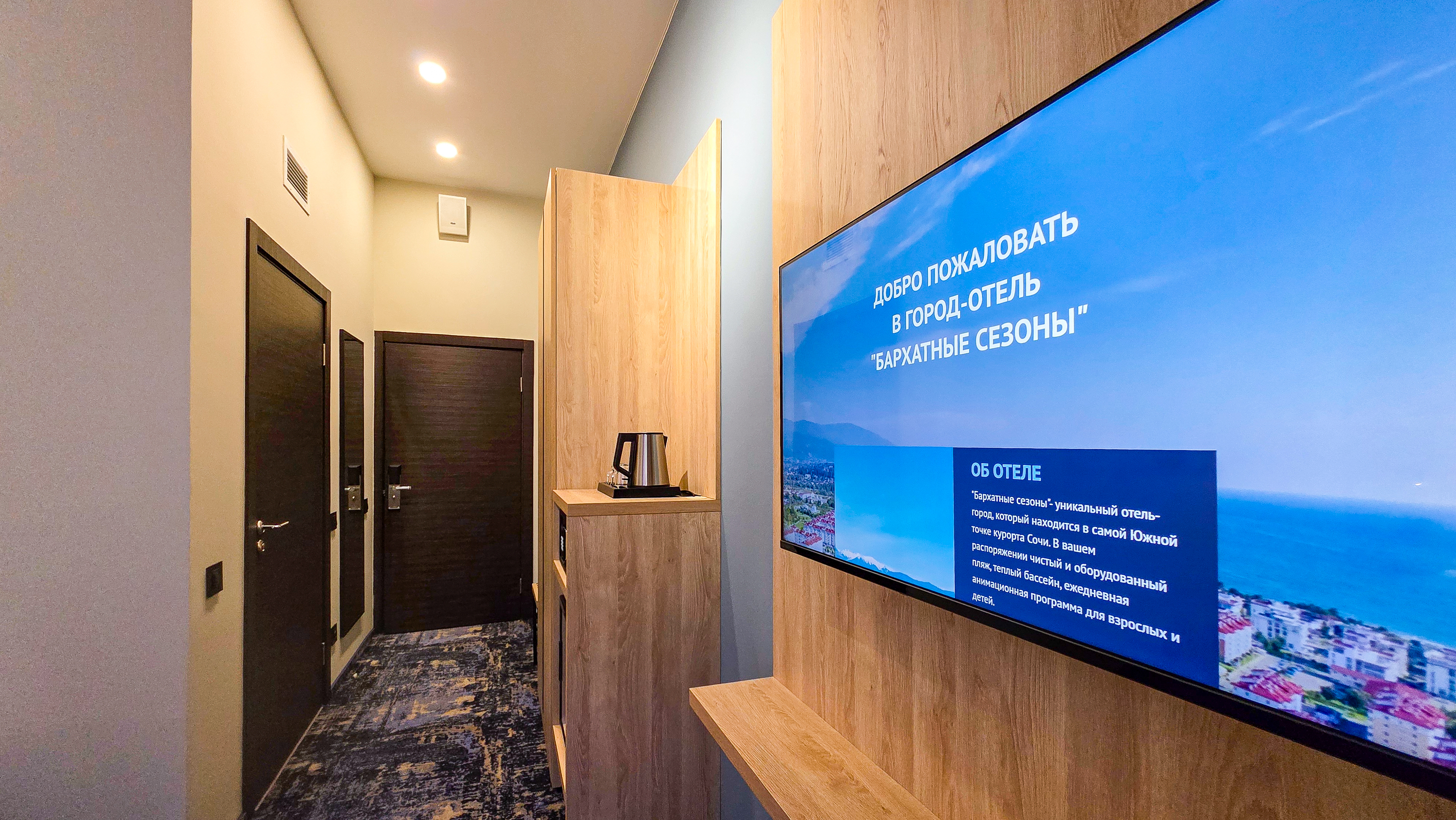 В городе-отеле «Бархатные сезоны» успешно реализован национальный проект «Доступная среда». На территории обустроены специальные парковки, установлены пандусы, оборудованы расширенные дверные проемы и функционируют просторные адаптированные лифты. Предусмотрены специально оборудованные номера различных категорий. Каждый номер оснащен удобной мебелью, поручнями в санузле, антискользящим покрытием и системой экстренного вызова персонала. Для удобного и безопасного спуска к морю на пляже оборудован пологий пандус. В распоряжении специальное пляжное кресло, для купания и спуска в воду.