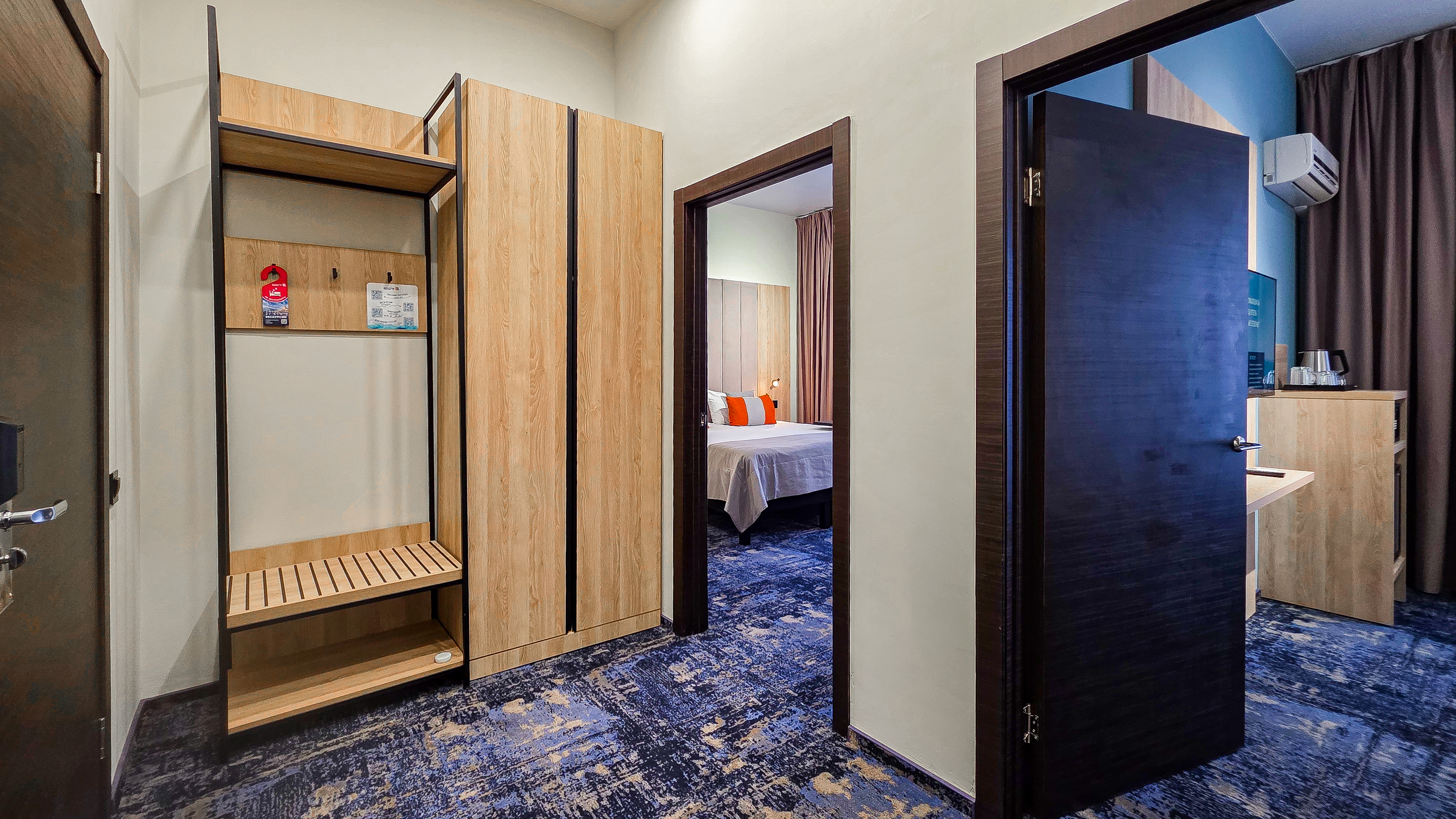 - Люкс. 2-местный 2-комнатный с кухней (зона Б). Осн. мест: 2. Доп. мест: 1.