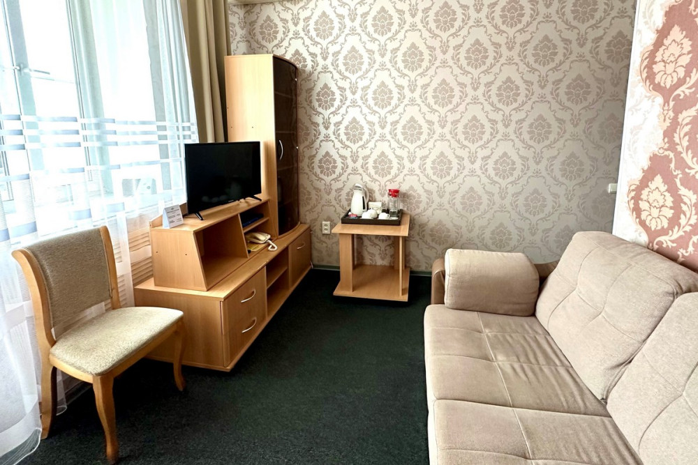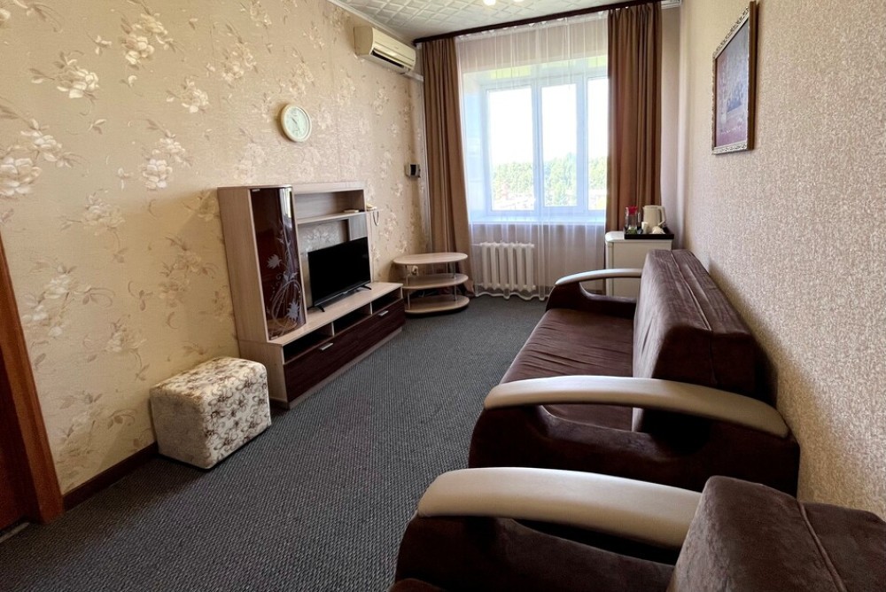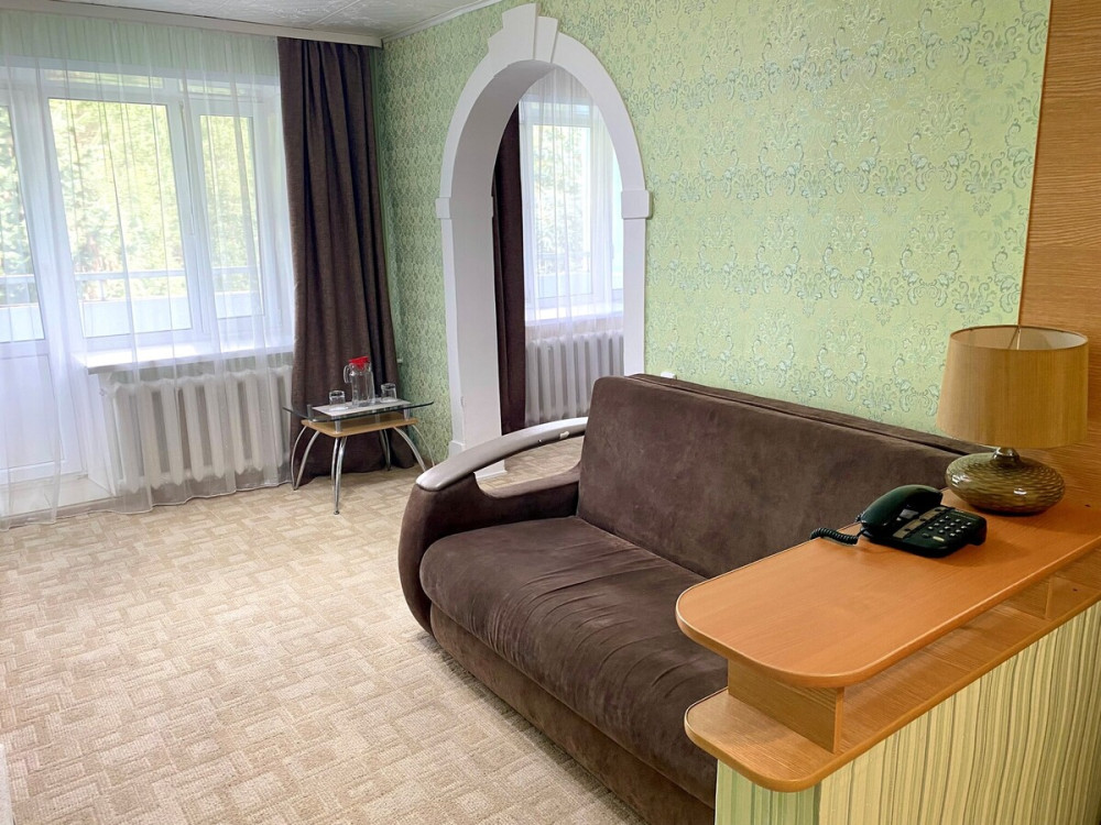 - Люкс. 1-местный 2-комнатный. Площадь: 36. Осн. мест: 1. Доп. мест: 3.