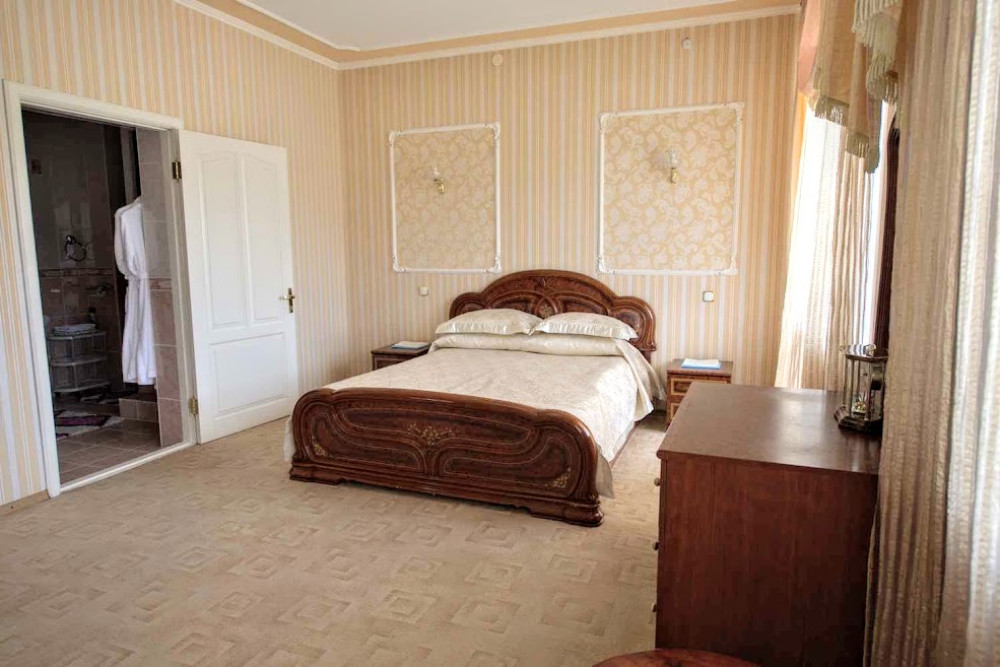 диван: ; кровать двуспальная: ; прикроватная тумбочка: ; стол: ; стулья: ; шкаф: ;