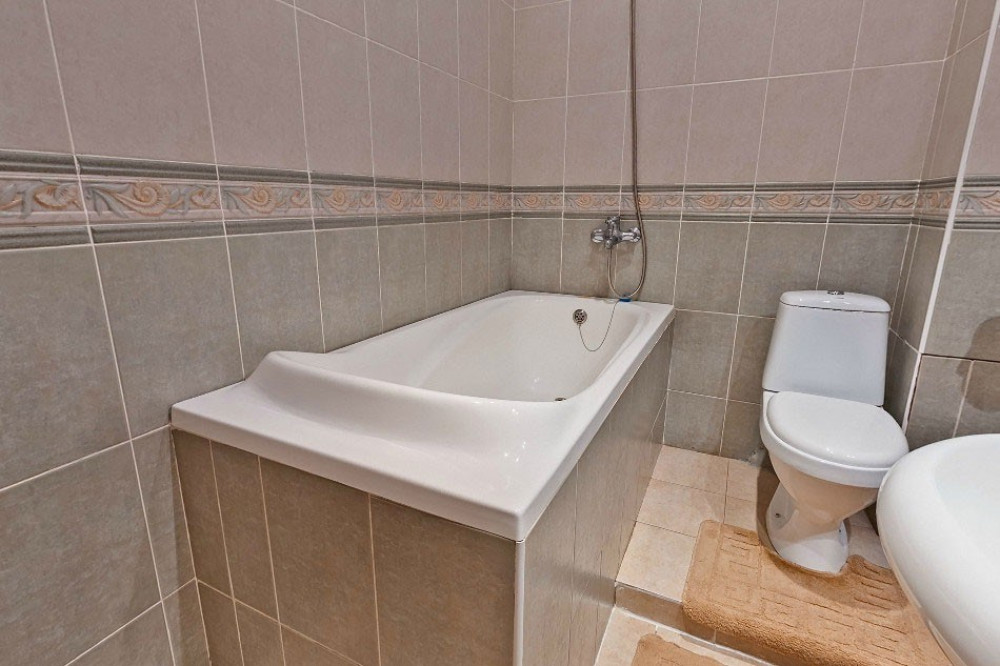 с ванной: ; с душевой кабиной: ; тапочки: ; туалетные принадлежности: ; фен: ; халат: ;